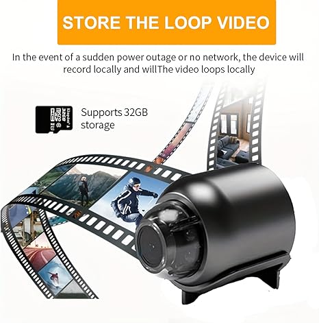 Kontinuerlig optagelse – Dette mini-Wi-Fi-kamera har ikke et indbygget batteri, men kan tilsluttes en powerbank eller USB-port for fjernvisning. Det understøtter loop-optagelse for at sikre uafbrudt optagelse. Når hukommelseskortet er fuldt, overskrives de ældste filer med de nyeste. Gå ikke glip af et eneste øjeblik.